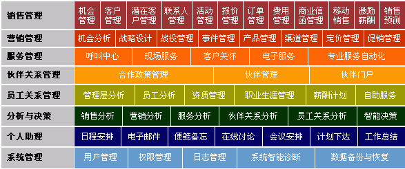 ·智能決策:依據(jù)對銷售、營銷、服務、伙伴關系、員工關系的分析結果,系統(tǒng)自動產(chǎn)生智能決策的建議。