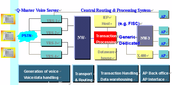 YesMobile的Q-system 包含了消費(fèi)者端的酷管家Q-Master 以及企業(yè)端的Q-Center,它是一個(gè)信息化服務(wù)的系統(tǒng)平臺(tái),它可以幫助解決多種存取裝置的問題。典型的用戶端設(shè)備就是酷管家(Q-Master),它是配備液晶顯示(LCD)的信息查詢及交易終端機(jī),使用ADSI通訊規(guī)格,具有呈現(xiàn)聲音及資料的功能及提供親切的人機(jī)界面。