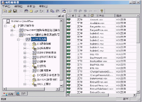 ·采用Windows Explorer風(fēng)格的樹(shù)形節(jié)點(diǎn)編輯呼叫流程,同時(shí)可通過(guò)查看屬性查看每個(gè)業(yè)務(wù)節(jié)點(diǎn)上下級(jí)之間的關(guān)系。使用戶(hù)對(duì)IVR的整個(gè)呼叫流程,以及各個(gè)節(jié)點(diǎn)之間的關(guān)系一目了然。