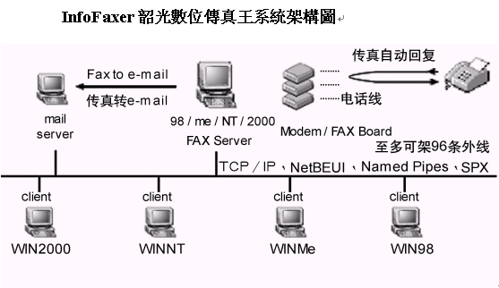 InfoFaxer韶光數(shù)位傳真王系統(tǒng)架構(gòu)圖