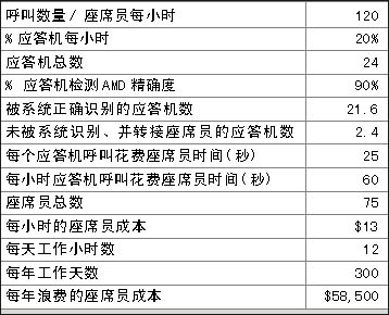 表1和表2表明在一個(gè)呼叫中心中精確的應(yīng)答機(jī)檢測(AMD)給企業(yè)所帶來的價(jià)值,兩表之間關(guān)于呼叫中心運(yùn)營的費(fèi)用每年相差$175,500。那么不同的AMD精確度意味著什么?在上例中,精確度每增加1%意味著每年會(huì)減少約$5,850的損失。