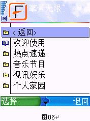 4.現(xiàn)在此軟件支持的媒體網(wǎng)站只有"掌景無限",估計以后隨著肥 6 用戶及在線視頻播放功能的普及,類似的網(wǎng)站會更多,打開"掌景無限",則系統(tǒng)會提示你所選擇的連接接入點,