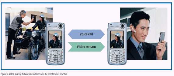 在最近一次諾基亞委托進行的IP多媒體研究中顯示,消費者喜歡增加了視頻共享的視頻電話,有趣的手機外觀被看作是非常重要的,而視頻共享也被認為是非常有用的,被看作是基于視頻短信的MMS的一個明顯的進步。消費者喜歡去共享的時刻是:例如在假期里,購物、舉家外出旅行,或者是一個周末的夜晚。通過視頻共享來展現你的位置及同行人員,可以確保人身的安全。同樣,視頻共享技術也可以應用于商業(yè)領域,如財產狀態(tài)監(jiān)視和遠程檢查野外工作等。