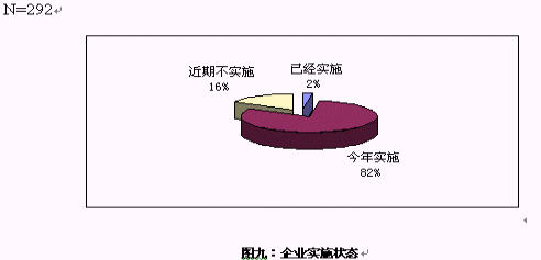 對(duì)大多數(shù)企業(yè)來(lái)說,對(duì)CRM還處于關(guān)注階段,只有7家企業(yè)表示已經(jīng)開始實(shí)施,在電話訪問中,了解到這7家企業(yè)的實(shí)施的主要是在渠道管理和客戶呼叫中心等方面,但表示今年會(huì)開始實(shí)施的卻超過8成。