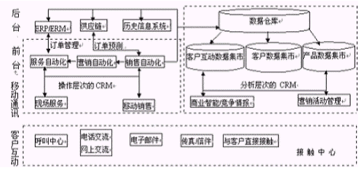 在企業(yè)中對(duì)于客戶關(guān)系資源管理方面可歸納為兩個(gè)方面的問題。其一,企業(yè)的銷售、營(yíng)銷和客戶服務(wù)部門難以獲得所需的客戶互動(dòng)信息。其次,來(lái)自銷售、客戶服務(wù)、市場(chǎng)、制造、庫(kù)存等部門的信息分散在企業(yè)內(nèi),這些零散的信息使得無(wú)法對(duì)客戶有全面的了解,各部門難以在統(tǒng)一的信息的基礎(chǔ)上面對(duì)客戶。這需要各部門對(duì)面向客戶的各項(xiàng)信息和活動(dòng)進(jìn)行集成,組建一個(gè)以客戶為中心的企業(yè),實(shí)現(xiàn)對(duì)面向客戶的活動(dòng)的全面管理。
