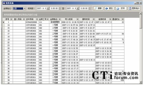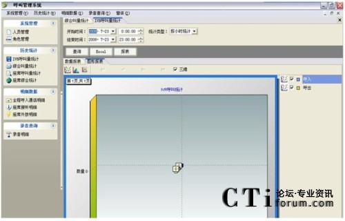 系統(tǒng)提供統(tǒng)計報表生成工具,實現(xiàn)對系統(tǒng)訪問次數(shù)的統(tǒng)計與分析,并以圖示直觀地反映出用戶關注的熱點。可按主叫號碼、局向統(tǒng)計時長,并自動生成效果圖,直觀表現(xiàn)業(yè)務發(fā)展。還可根據(jù)主叫統(tǒng)計時長,當天分析,本周分析,本月分析,提供時長走勢圖(可以以小時為單位分析時長的走勢,也可以以天為單位分析時長的走勢)