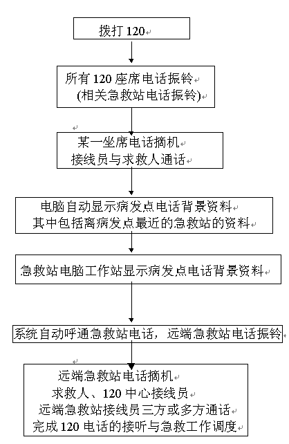 120急救中心接到求救電話后,120中心接線員在系統(tǒng)的配合下,自動呼通急救站,實現(xiàn)調度功能