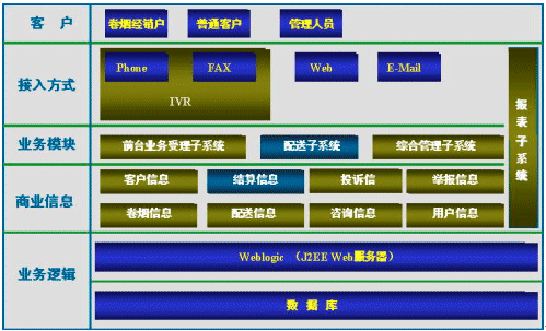 華泰貝通與南通珠峰電腦公司合作建設(shè)的南通煙草客戶服務(wù)中心系統(tǒng),覆蓋南通市和下屬六個縣市,實(shí)現(xiàn)了電話訪銷、電子結(jié)算、物流配送等業(yè)務(wù)功能,是煙草銷售業(yè)電子商務(wù)的典型案例,南通煙草在現(xiàn)有電子商務(wù)平臺基礎(chǔ)上,將進(jìn)一步發(fā)展與完善系統(tǒng)功能,建立一個穩(wěn)定實(shí)用、數(shù)據(jù)高度共享、緊扣業(yè)務(wù)需求及調(diào)控能力強(qiáng)的高水平信息系統(tǒng),以成熟的客戶關(guān)系管理,實(shí)現(xiàn)優(yōu)質(zhì)的個性化客戶服務(wù);以完善的商業(yè)智能化系統(tǒng),提供敏捷高效的經(jīng)營分析與決策支持;以科學(xué)的倉儲配送資源管理,實(shí)現(xiàn)物流效益的最大化。