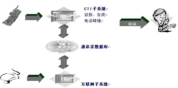 Internet子模塊相對(duì)比較簡單,可以采用目前主流的網(wǎng)絡(luò)通訊錄服務(wù)方式進(jìn)行服務(wù);而為了更好服務(wù)用戶,CTI子模塊需要采用先進(jìn)的語音合成和語音識(shí)別技術(shù)。