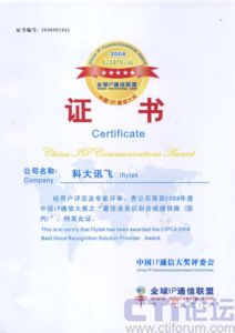 科大訊飛榮獲中國IP通信大獎(jiǎng)