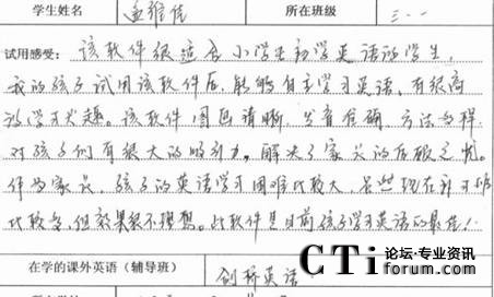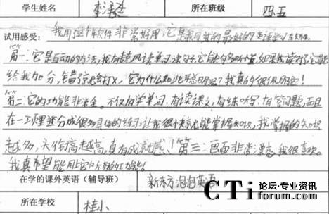 CTI論壇(ctiforum)1月21日消息(記者 潘婷婷):2010年12月,科大訊飛在天津市的兩所小學(xué)舉辦了暢言互動(dòng)英語學(xué)生版試用體驗(yàn)活動(dòng),同學(xué)們積極參與,在校園內(nèi)掀起了一股練聽力、學(xué)口語的英語學(xué)習(xí)熱潮。通過實(shí)際試用體驗(yàn),暢言互動(dòng)英語學(xué)生版學(xué)習(xí)產(chǎn)品以其強(qiáng)大、實(shí)用的學(xué)習(xí)功能,得到了廣大家長、學(xué)校師生的一致認(rèn)可和充分肯定。