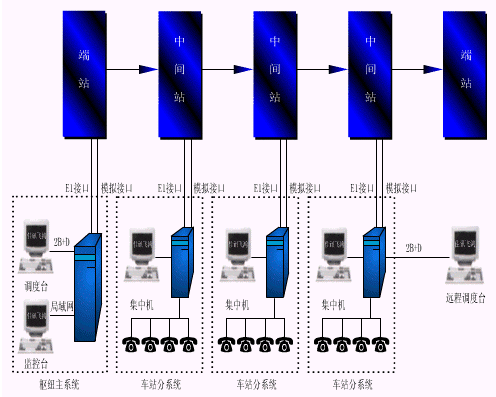 北京佳訊飛鴻通信技術(shù)有限公司在充分調(diào)研的基礎(chǔ)上,推出了飛鴻98鐵路數(shù)字專用通信系統(tǒng),以一套數(shù)字化的設(shè)備替代原有模擬調(diào)度系統(tǒng)、專用電話系統(tǒng)、集中機(jī)和區(qū)轉(zhuǎn)機(jī)等多種模擬設(shè)備,實(shí)現(xiàn)鐵路專用通信的所有基本功能,同時(shí)利用數(shù)字化的傳輸通道和數(shù)字化的技術(shù),實(shí)現(xiàn)整個(gè)調(diào)度區(qū)間內(nèi)所有設(shè)備的集中監(jiān)控、遠(yuǎn)程維護(hù)、故障診斷、環(huán)境動(dòng)力監(jiān)測(cè)等等維護(hù)管理功能,大大方便了維護(hù)檢修工作,使其維修方式可由過(guò)去的預(yù)防修模式轉(zhuǎn)變?yōu)楝F(xiàn)代的狀態(tài)修方式,可在不中斷通信的情況下對(duì)系統(tǒng)進(jìn)行維護(hù),極大的提高了系統(tǒng)的安全可靠性。同時(shí)系統(tǒng)兼容原有模擬調(diào)度實(shí)回線,沒(méi)有數(shù)字通道的車站也可通過(guò)模擬實(shí)回線接入系統(tǒng)。