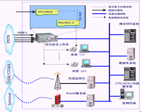 該95598客服系統(tǒng)采用世界知名品牌的Intel Dialogic板卡,構(gòu)建在強(qiáng)大的、開放的CTI應(yīng)用開發(fā)平臺(tái)AnyTouch上,開發(fā)出符合縣級(jí)供電公司的客戶服務(wù)業(yè)務(wù),并完全根據(jù)《國電95598客戶服務(wù)中心系統(tǒng)規(guī)范》,通過靈活、方便的圖形化開發(fā)工具或接口,與供電公司已有的用電MIS系統(tǒng)緊密結(jié)合,是一套強(qiáng)大的、完整的95598客戶服務(wù)系統(tǒng)。
