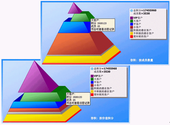 把事務處理拓寬到精確化客服方面,強調(diào)客戶關系/銷售/服務管理自動化程度,注重數(shù)據(jù)挖掘分析,更在意CRM系統(tǒng)的功能深度、實現(xiàn)機制和管理方法內(nèi)涵。例如對服務管理,除了服務請求,衍生項還包括客戶資產(chǎn)、服務合約、知識庫。即便對銷售管理,內(nèi)涵也比低端應用更豐富,只有產(chǎn)品管理不夠,衍生項還包括自動報價所需的價格方案;僅有合同管理也不夠,衍生項還包括報價單、提議;衍生項還包括競爭對手管理、存貨管理、銷售預測分析。中低端CRM應用,商務前沿銷售和服務管理更加完整、精確,用戶企業(yè)更加注意到購買實施服務的重要性,但再高層面的市場營銷及客戶金字塔分析等并不作為關鍵需求。