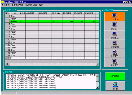 為了突破傳統(tǒng)電話會議系統(tǒng)的功能局限性,降低采用可視電話會議系統(tǒng)的高昻成本,本公司采用先進(jìn)的CTI技術(shù)和設(shè)備,推出了SmarTalk Conference電話會議系統(tǒng),具有超強的會議能力(同時可建立多個會議,每個會議最多同時可以設(shè)60個全功能會議座席,會議語音效果清晰流暢),并且利用計算機控制技術(shù)使操作變得簡捷、方便,得到用戶一致的好評。同時用戶可以使用普通電話終端(包括固定電話和移動電話)進(jìn)入會議,使用本系統(tǒng)的企業(yè)用戶不需要專用的中心會議室,參加會議的人員可以分布在任一地點,極大地方便了會議的召開。