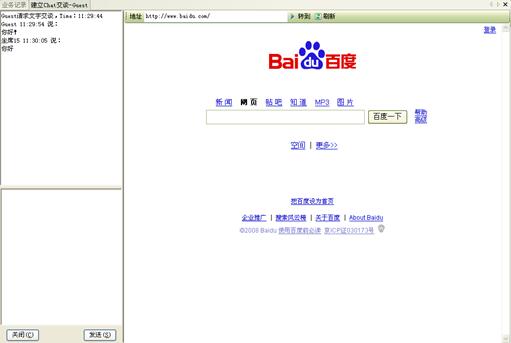 網(wǎng)頁(yè)同步:客戶(hù)在通過(guò)"客服代表回復(fù)"、"互聯(lián)網(wǎng)電話(huà)"、"文字交談"等方式與客服代表進(jìn)行實(shí)時(shí)交流時(shí),還可以通過(guò)網(wǎng)頁(yè)同步功能,與客戶(hù)代表的瀏覽器進(jìn)行同步。這樣,客戶(hù)與客戶(hù)代表看到的是同一網(wǎng)頁(yè),由客戶(hù)代表引導(dǎo)客戶(hù)對(duì)網(wǎng)頁(yè)進(jìn)行瀏覽,找到所需要的信息。網(wǎng)頁(yè)同步功能適用于不同的實(shí)時(shí)交流方式,可以大大提高客戶(hù)服務(wù)的效率和質(zhì)量。如圖14、15所示: