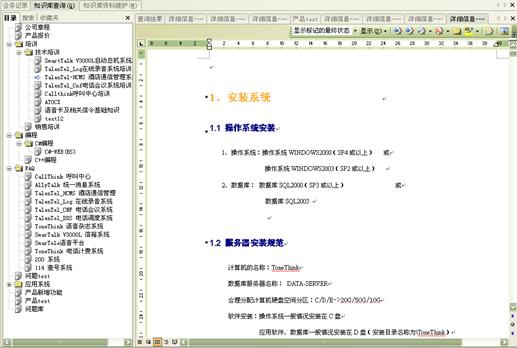業(yè)務(wù)知識(shí)庫(kù)系統(tǒng)包括大量的信息,它可以幫助坐席人員精確、及時(shí)地得到相關(guān)知識(shí)的詳細(xì)信息。坐席人員可以利用業(yè)務(wù)知識(shí)庫(kù)系統(tǒng)提供的多種查詢(xún)手段,進(jìn)行各種信息的查詢(xún)。管理人員還可以通過(guò)知識(shí)庫(kù)訪(fǎng)問(wèn)量統(tǒng)計(jì)來(lái)了解座席員訪(fǎng)問(wèn)知識(shí)庫(kù)的情況,并且可以通過(guò)知識(shí)庫(kù)資料維護(hù)來(lái)靈活定制知識(shí)庫(kù)的內(nèi)容。