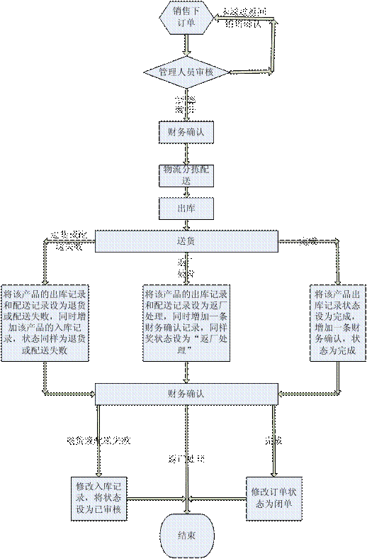 在呼叫中心系統(tǒng)中,為了更好地幫助企業(yè)進(jìn)行銷(xiāo)售管理,UltraCRM系統(tǒng)設(shè)有進(jìn)銷(xiāo)存管理。從產(chǎn)品的采購(gòu)、入庫(kù)出庫(kù)、退貨、返廠處理、庫(kù)存管理、庫(kù)存盤(pán)點(diǎn)到財(cái)務(wù)確認(rèn)都有一套完整的流程。參見(jiàn)圖7.22和7.23的產(chǎn)品入庫(kù)流程和出庫(kù)流程。所有在呼叫中心中進(jìn)行銷(xiāo)售的產(chǎn)品數(shù)據(jù)都分類(lèi)保存在系統(tǒng)的數(shù)據(jù)庫(kù)中,坐席人員可以根據(jù)產(chǎn)品型號(hào)、名稱(chēng)、關(guān)鍵字等進(jìn)行分類(lèi)查詢(xún)。各類(lèi)產(chǎn)品的基本參數(shù)、介紹也都包含在產(chǎn)品數(shù)據(jù)庫(kù)中,坐席人員可以很快地查到一項(xiàng)產(chǎn)品的基本信息,提高與用戶(hù)溝通的工作效率。