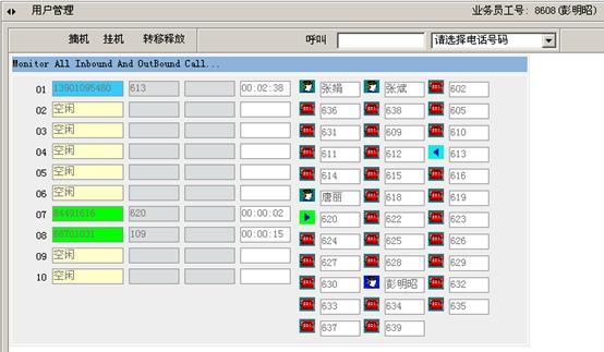 1)系統(tǒng)與CTI服務(wù)器配合,輕松實(shí)現(xiàn)諸如:實(shí)時(shí)監(jiān)控系統(tǒng)的呼叫隊(duì)列、登陸坐席的狀態(tài);并且通過(guò)屏幕控制電話(huà)的接答、掛機(jī)、轉(zhuǎn)接,以及建立會(huì)議等操作。如圖2: