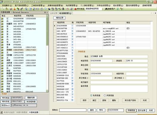 其所有資料顯示在主界面右側(cè)的“外部電話(huà)本”中。在轉(zhuǎn)發(fā)工單等功能中也將使用外部電話(huà)簿資料。如圖5所示: