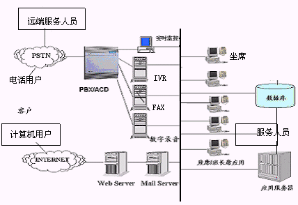 呼叫中心是伴隨著激烈的市場競爭和企業(yè)成功的經(jīng)營理念而生,既低端的價格競爭向高端的服務競爭以及對企業(yè)核心客戶的保持。它融合了傳統(tǒng)的公共電話網(wǎng)PSTN,計算機網(wǎng)絡(luò),以及數(shù)據(jù)庫存儲技術(shù)和自動語音應答IVR等技術(shù),將語音與數(shù)據(jù)資源有效的結(jié)合,為企業(yè)在技術(shù)上保證核心客戶的高忠誠度打下了堅實的基礎(chǔ)。