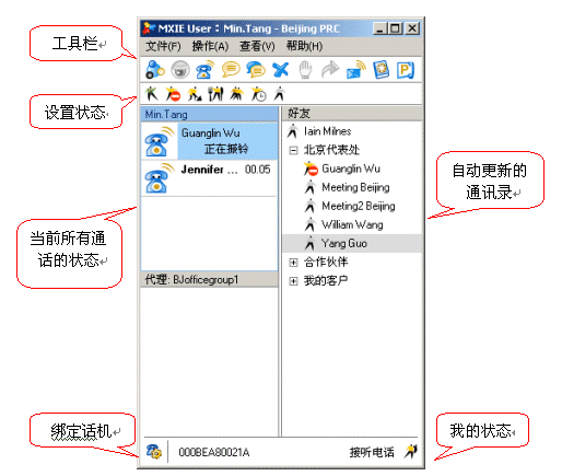 MXIE是一個用戶端UCI(Unified communications Interface,統(tǒng)一通信界面)軟件。通過它可以實時設(shè)置或查看工作狀態(tài);使用自動更新的通訊錄,無需撥號進(jìn)行呼叫;發(fā)送即時消息(IM:Instant Message,軟件和電話互發(fā));發(fā)送/收聽語音郵件;群發(fā)/群收傳真;設(shè)置個性化的來電處理規(guī)則等。