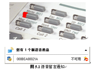 當有新消息到達時,話機上的“Msg”燈會閃亮,MXIE軟件也會有相應提示。
