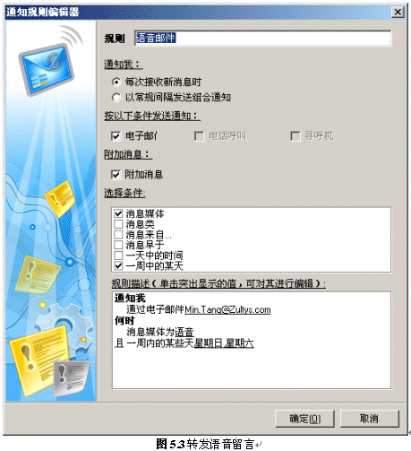 系統(tǒng)還可以將語音留言(或留言通知)直接發(fā)送到用戶的個人電子郵件信箱,以保證用戶外出時也能及時收聽留言,如果用戶的電子郵件信箱支持手機短信功能,那么,當有新留言時,用戶就可以收到手機短訊。