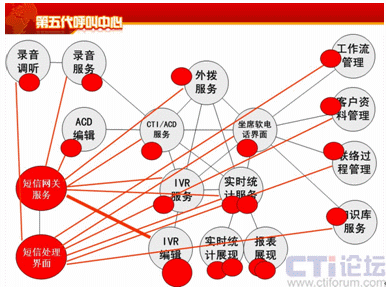 需要保存記錄的,需要做質(zhì)量管理的,大家需要把這個東西保存起來,以便于考核座席,這時候電話錄音的服務(wù)需要改動,座席質(zhì)量管理的界面需要改動,因為以前管理界面是聽錄音的,現(xiàn)在是需要看文本了。接著客戶資料管理也是需要嗎?當(dāng)然需要了,來一個短信以后,盡量把客戶資料能夠屏幕彈出,降低我們的服務(wù)時間,需要改進。知識庫需要改動嗎?需要,因為我發(fā)短信的時候,不可能每個字都敲進去,需要從知識庫把這個信息拽出來,這時候需要知識庫的服務(wù)。工作流,通過短信也要進行一些業(yè)務(wù)的處理。聯(lián)絡(luò)過程也需要管理。這時候戰(zhàn)略出來了,經(jīng)營者說了,我現(xiàn)在通過短信要做營銷了,我要外撥了,和外撥服務(wù)連接出來,還有經(jīng)營者的一些戰(zhàn)略,比如說對于一些比較高的客戶,優(yōu)先分配,降低等待時長。那么這個戰(zhàn)略還包括這些產(chǎn)品生命周期的管理,需要不同的服務(wù)方式,一樣也要通過編輯,策略可以自行調(diào)整。