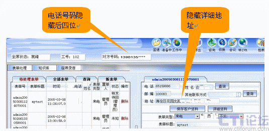 例如電話號碼、送貨地址是最為重要的商業(yè)信息。將部分信息對電銷人員、中間環(huán)節(jié)的人員隱藏使其無法進(jìn)行“飛單”,而在送貨環(huán)節(jié)再OPEN詳細(xì)信息。如下圖所示: