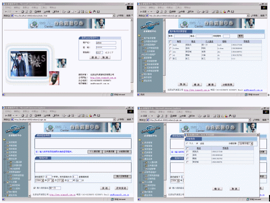 企業(yè)里的每個(gè)用戶要實(shí)現(xiàn)短信發(fā)送,僅需一臺電腦,然后利用瀏覽器就可以實(shí)現(xiàn)分組發(fā)送(如:會議通知、緊急通知)、定時(shí)群發(fā)(如:提醒短信、恭賀短信、祝福短信)、以及接收工作情況匯報(bào)短信等,系統(tǒng)提供通訊薄管理,可編輯常用短語。服務(wù)器端支持多個(gè)GSM設(shè)備群發(fā),滿足不同發(fā)送短信量的需要。快些下載系統(tǒng)的動畫演示,新增功能多多。!