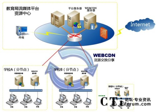 圖:VIEWGOOD WEBCDN流媒體多節(jié)點綜合管理應(yīng)用平臺教育解決方案應(yīng)用拓撲圖