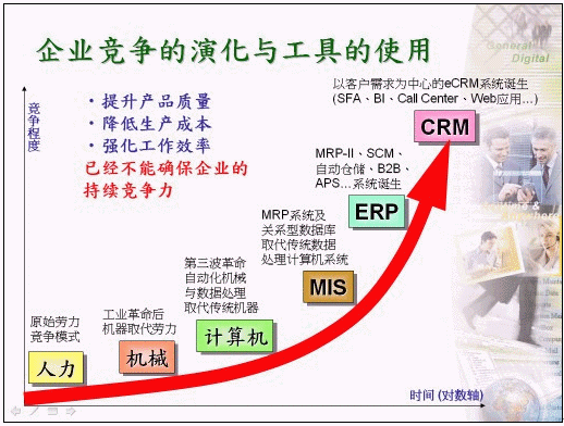 過去企業(yè)為取得同業(yè)間之競(jìng)爭(zhēng)優(yōu)勢(shì),無不絞盡腦汁針對(duì)『產(chǎn)品質(zhì)量』、『生產(chǎn)成本』及『工作效率』等作為主要改善目標(biāo),除了從本身管理制度的檢討改進(jìn)外,同時(shí)也積極運(yùn)用現(xiàn)代信息科技的力量,規(guī)劃出適合自己的企業(yè)e化版圖,以因應(yīng)全球化競(jìng)爭(zhēng)時(shí)代的來臨,在此同時(shí)許多信息系統(tǒng)也逐步推動(dòng)導(dǎo)入企業(yè)內(nèi)部,包括:早期的MIS系統(tǒng)、近期的ERP系統(tǒng)、甚或電子簽核系統(tǒng)等,主要目的為提升內(nèi)部工作效率、節(jié)省內(nèi)部生產(chǎn)成本等作準(zhǔn)備,以『節(jié)流』為目標(biāo)強(qiáng)化企業(yè)自身的競(jìng)爭(zhēng)能力。