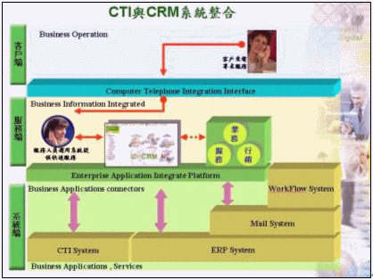 但傳統(tǒng)的CTI系統(tǒng)其重點(diǎn)乃是著重在服務(wù)工作的自動(dòng)化方面,只提供簡(jiǎn)單的客戶來電訊息提示,對(duì)于客戶進(jìn)一步的背景資料、嗜好、購買需求及歷史往來記錄并不清楚也無法實(shí)時(shí)得知,更別說想藉由CTI系統(tǒng)來提供客戶個(gè)人化的服務(wù)、有效節(jié)省通話時(shí)間、刺激其潛在的購買需求,為了達(dá)成上述的目標(biāo),唯有將CTI系統(tǒng)與CRM系統(tǒng)進(jìn)行整合,如此,客戶服務(wù)的質(zhì)量才可能達(dá)成某個(gè)程度的提升,而良好的客戶關(guān)系管理也將是未來呼叫中心運(yùn)作成功與否的關(guān)鍵所在。