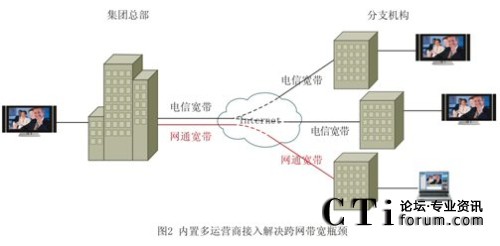 另外,集團各地分支機構接入Internet的方式有電信寬帶、網(wǎng)通寬帶等多種形式。眾所周知,南北電信分開運營使得電信和網(wǎng)通之間的接口帶寬存在瓶頸,造成網(wǎng)絡延時大、丟包嚴重,給諸多跨運營商網(wǎng)絡的業(yè)務互通帶來了很大的影響。而這對于構建實時性要求非常高的視頻會議來說,更是一個嚴峻挑戰(zhàn)。