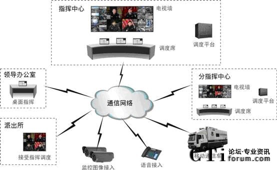 系統(tǒng)支持大型或中小型調(diào)度指揮中心部署,也支持在領導辦公室部署小型指揮點;各個前端點可通過E1專線或以太網(wǎng)接入中心平臺,也可通過衛(wèi)星、無線等方式支持移動終端的接入。