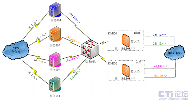 安邦保險在全國各地共37個分支機(jī)構(gòu),網(wǎng)絡(luò)結(jié)構(gòu)復(fù)雜,有電信用戶、網(wǎng)通用戶以及VPN專網(wǎng)用戶等,系統(tǒng)平臺的搭建要能夠?qū)崿F(xiàn)不同網(wǎng)絡(luò)間實時快速的溝通。