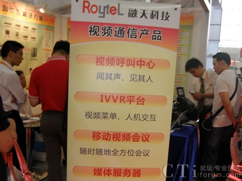 CTI論壇(ctiforum)9月25日消息(記者楊?lèi)偅?記者從2009年中國(guó)國(guó)際信息通信展覽會(huì)了解到,在本次展會(huì)上,融天科技融天科技再次隆重推出了國(guó)際領(lǐng)先技術(shù)的視頻呼叫中心、移動(dòng)視頻會(huì)議、IVVR平臺(tái)、IP媒體服務(wù)器、3G視頻網(wǎng)關(guān)等視頻系列產(chǎn)品及解決方案。