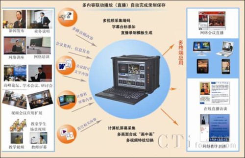 CTI論壇(ctiforum)6月8日消息(記者 潘婷婷):隨著視訊技術(shù)的不斷發(fā)展,市場(chǎng)上出現(xiàn)了越來(lái)越多的應(yīng)用終端,除了傳統(tǒng)的PC外,IPAD、IPHO等新興移動(dòng)終端紛紛進(jìn)入市場(chǎng),多終端應(yīng)用的網(wǎng)絡(luò)視音頻系統(tǒng)越來(lái)越被用戶所關(guān)注。傳統(tǒng)的直播錄播系統(tǒng)在很大的程度上已不能滿足部分用戶的需求,清晰、流暢、支持多終端應(yīng)用的網(wǎng)絡(luò)直播錄播系統(tǒng)已經(jīng)成為網(wǎng)絡(luò)視頻應(yīng)用的亮點(diǎn)和優(yōu)勢(shì)。北京經(jīng)緯中天信息技術(shù)有限公司作為國(guó)內(nèi)一流的專業(yè)網(wǎng)絡(luò)視音頻應(yīng)用平臺(tái)開(kāi)發(fā)商和服務(wù)商,不僅僅專注于行業(yè)技術(shù)的研究,同時(shí)更加關(guān)注市場(chǎng)的需求,實(shí)時(shí)地推出了“支持多終端應(yīng)用的富媒體直播錄播系統(tǒng)”,可很好地滿足用戶多種網(wǎng)絡(luò)視頻應(yīng)用。