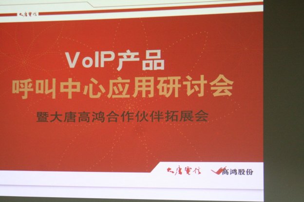 2006年9月8日,由中國VoIP業(yè)界的引領(lǐng)者大唐高鴻數(shù)據(jù)網(wǎng)絡(luò)技術(shù)股份有限公司(股票簡稱:高鴻股份;股票代碼:000851)主辦的大唐高鴻VoIP產(chǎn)品呼叫中心應(yīng)用研討會(huì)在北京大唐電信集團(tuán)主樓隆重舉行,此次會(huì)議由CTI論壇協(xié)辦。這是會(huì)議是大唐高鴻攜其VoIP產(chǎn)品進(jìn)軍呼叫中心領(lǐng)域的里程碑。參加會(huì)議的代表來自虛擬運(yùn)營商、VoIP公司、呼叫中心公司,企業(yè)行業(yè)客戶以及知名媒體共120余人,大唐高鴻還向會(huì)議代表介紹了其VoIP產(chǎn)品與呼叫中心廠商的合作計(jì)劃,預(yù)示著大唐高鴻正式向全國展開VoIP產(chǎn)品在呼叫中心行業(yè)中的應(yīng)用的市場攻勢。