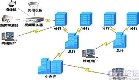 - 由于金融系統(tǒng)的機構(gòu)較多且分散,所以監(jiān)控中心可以分為若干級別,功能上相互獨立,但在資源管理上卻可以共享互聯(lián)。例如分行、總行、中央行這樣的級別嵌套,就可以設(shè)立3級模式,在每一級上都是一套功能完備的監(jiān)控系統(tǒng),并對上一級負責,使得系統(tǒng)中任何一臺電腦,只要通過IE瀏覽器就能監(jiān)控到網(wǎng)絡(luò)中任何一個鏡頭。