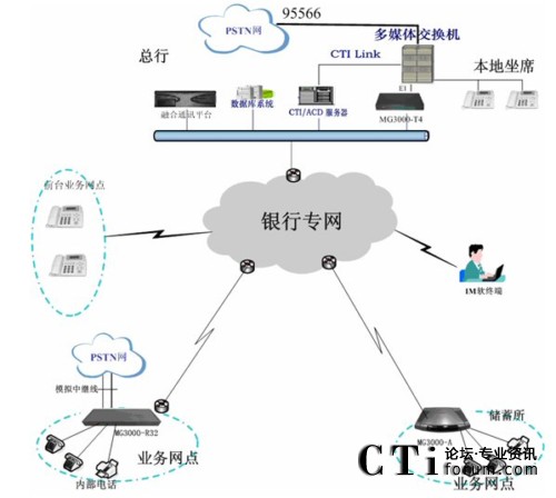 再是目前中行內(nèi)部的電話系統(tǒng)全部基于PSTN網(wǎng)絡(luò),通訊成本很高,為了充分利用中行自有的數(shù)據(jù)網(wǎng)絡(luò),節(jié)省中行通訊成本,提高中行內(nèi)部的溝通效率,規(guī)劃全省的內(nèi)部IP語音通訊系統(tǒng)。