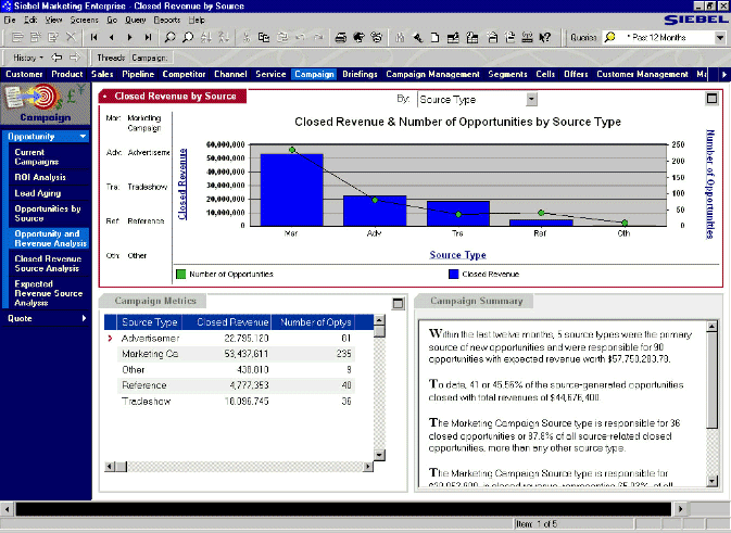 Siebel eBriefings 、Siebel eContent Services主要應(yīng)用于對于大量商務(wù)信息的過濾和篩選。通常,企業(yè)職員需要花費大量的時間和精力搜尋他們所需要的數(shù)據(jù)與信息。Siebel eBriefings and Siebel eContent Services可以幫助企業(yè)職員利用四種不同的信息類型(個人信息、賬戶信息、競爭對手資料、公司狀況信息),從Internet 、extranet和intranet,搜集其所需要的個性化的信息資料。 Siebel eBriefings和Siebel eContent Services還可以與許多企業(yè)外部的搜索門戶系統(tǒng)進(jìn)行集成與聯(lián)結(jié),可從其上面獲得豐富的新聞信息、企業(yè)信息、及其他公開的信息資料。