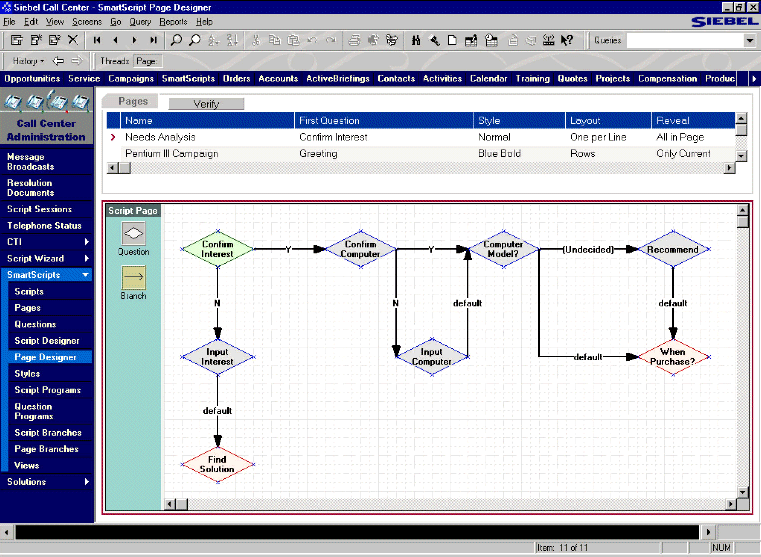 | 圖三. Siebel eMarketing綜合的客戶及市場分析 | 圖四. 使用Siebel eSmartScript工具設(shè)計市場營銷策略工作流程 |