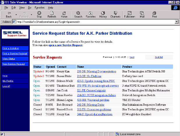 圖五. Siebel eService展示個性化的,動態(tài)的服務(wù)信息