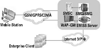 EMISS 移動(dòng)信息服務(wù)系統(tǒng)是構(gòu)建于企業(yè)平臺(tái)與移動(dòng)運(yùn)營商數(shù)據(jù)支撐平臺(tái)之間的增值業(yè)務(wù)服務(wù)系統(tǒng),在主體結(jié)構(gòu)上劃分為EMISS Server 和Enterprise Client。
