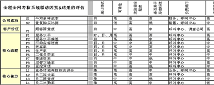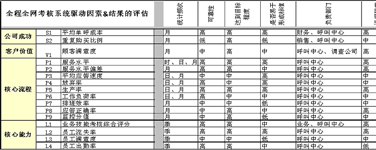 上表為與全程全網(wǎng)考核策略目標相匹配的驅(qū)動因素指標與結果指標的列示。