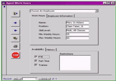 呼叫中心的員工模塊是WFMS的重要組成,因?yàn)楹艚兄行牡娜藛T成本就要占到總成本的60-70%?梢娙藛T管理在呼叫中心勞動力管理的重要性。每天管理人員都要安排員工早餐、午餐、晚餐以及會議和培訓(xùn)的時(shí)間,盡量照顧照顧到每一個(gè)人的需求。然而不幸得是這種完美的計(jì)劃常常會被電話量所打斷,因?yàn)榭蛻粲肋h(yuǎn)不會考慮是上午還是下午打電話,他們不會允許所有的員工在同一時(shí)間去就餐。WFMS通過收集以往的電話量和登錄系統(tǒng)的員工資料,可以有效地預(yù)測電話量從而安排合理數(shù)量的員工。系統(tǒng)收集的信息包含員工的姓名、分機(jī)號碼、日期、出勤情況等等。圖5就是典型的員工管理系統(tǒng)的模版界面。