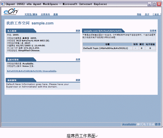 用戶(hù)在第一次登陸時(shí),在IE的地址欄中正確鍵入WorkSpace的IP地址便可以進(jìn)入WorkSpace的歡迎頁(yè)面。在該頁(yè)面上顯示有座席員工作空間(Agent