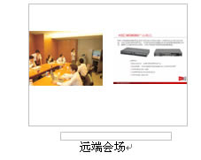 在主會場,分會場的會議室配備H3C高清視訊終端MG6060。H3C MG6060終端支持H.263、H.264等視頻編解碼協(xié)議,并采用了專有的視頻前、后處理技術(shù),使得圖像質(zhì)量大大提升,在周圍環(huán)境光照較差或者會場顏色搭配不甚和諧的情況下,仍舊能夠得到清晰、自然的圖像。視頻功能主要特色功能包括動態(tài)4CIF高清圖像、H.239雙視頻流傳送、畫中畫(PIP)、雙屏顯示、分屏顯示、VGA輸入、VGA輸出、桌面?zhèn)魉、圖像屏蔽、圖像參數(shù)調(diào)整等。有關(guān)H3C